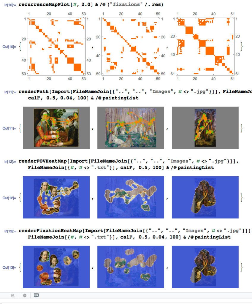 Recurrence, heat maps, trajectories and fixations